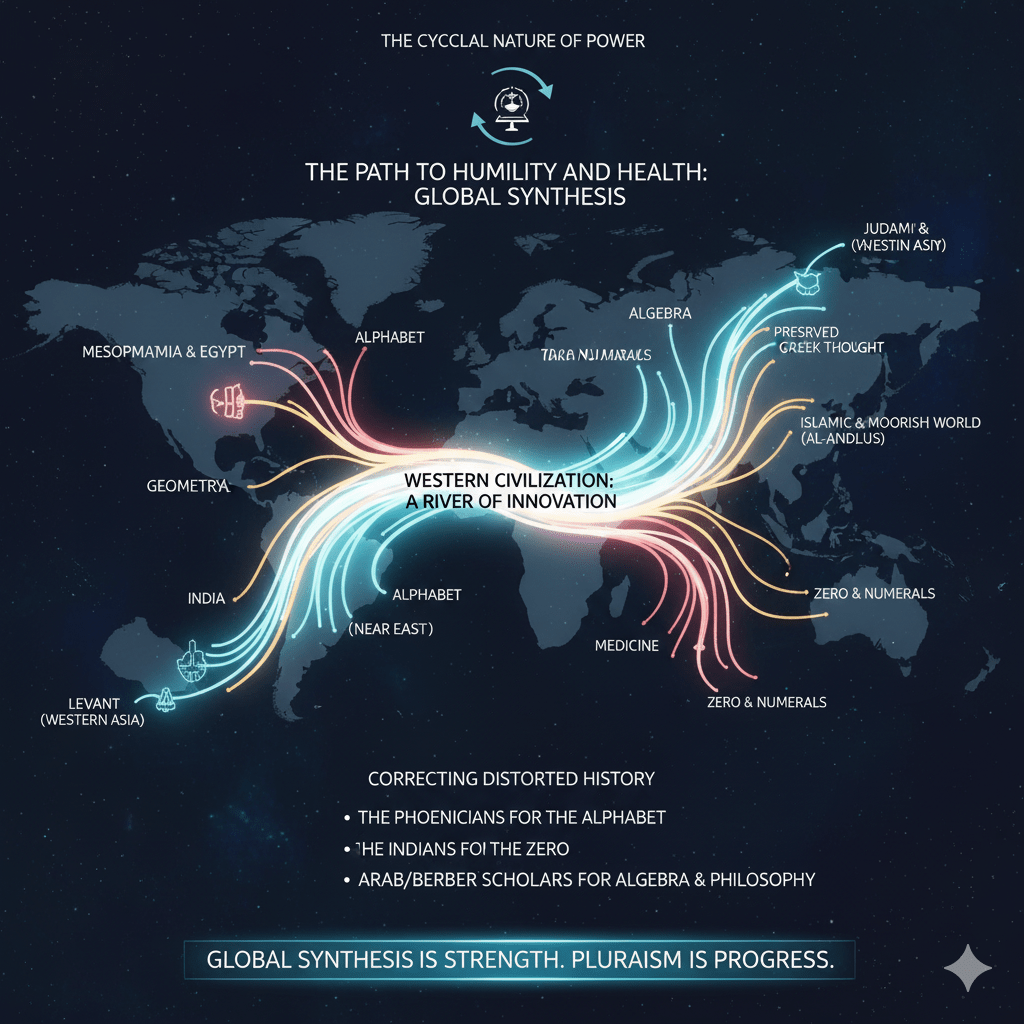 The path to curing Western Civilization’s superiority complex lies in accepting the truth of global synthesis and the cyclical nature of power.