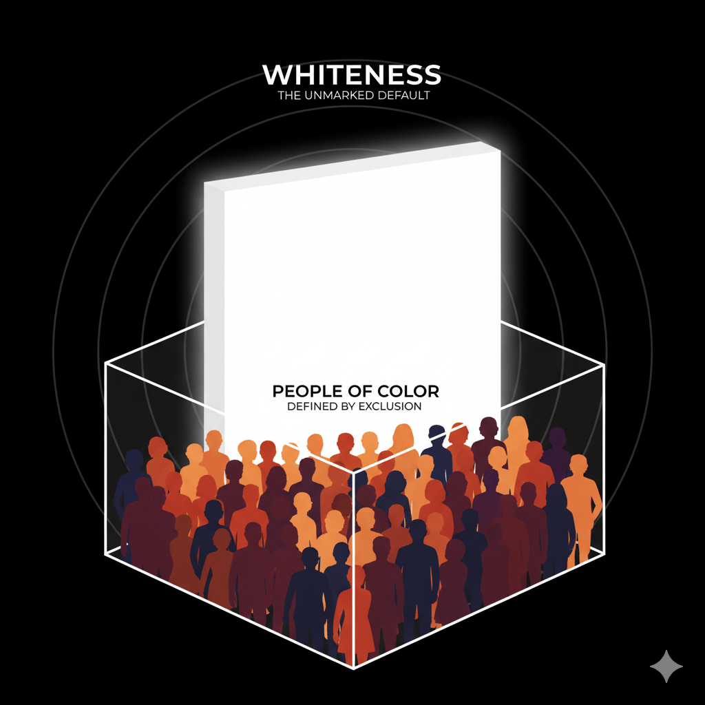 - Color as the Barrier: The simple fact of skin color becomes the fastest way to divide people. Whiteness is established as the ideal, the unmarked default. All others are grouped under the political label “people of color.” This grouping, regardless of its original intent, forces billions of diverse people across the globe into a single category defined only by their exclusion from the white norm. It visually reinforces the idea that the world revolves around the white experience.