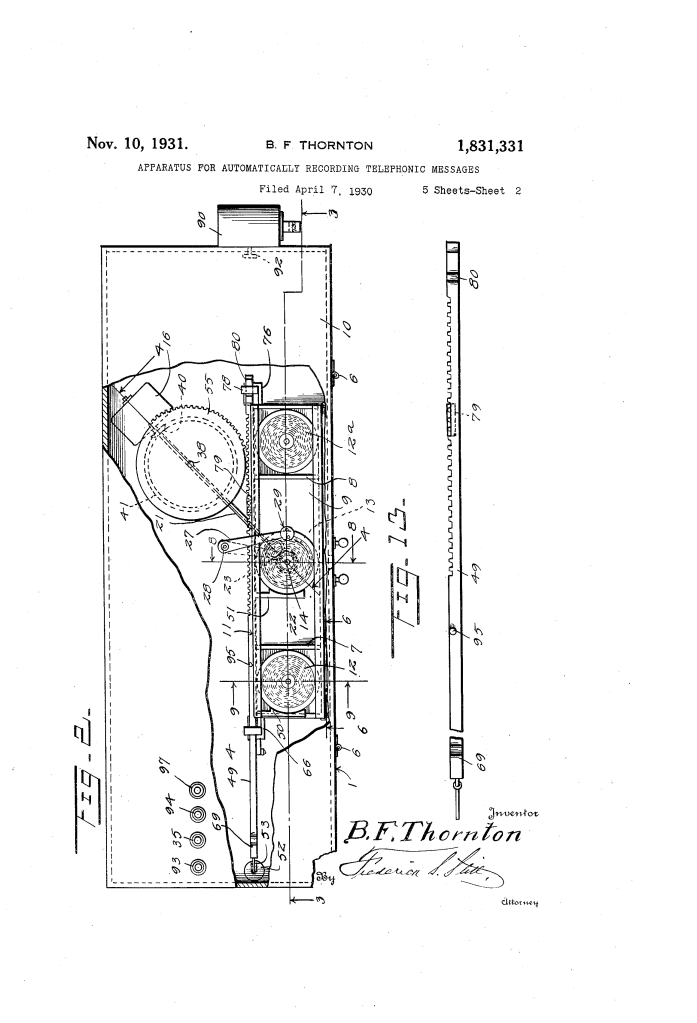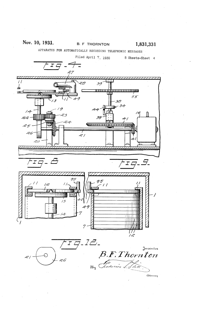 Automatic Telephonic Message Recorder (Benjamin F. Thornton, No. 1,831,331)