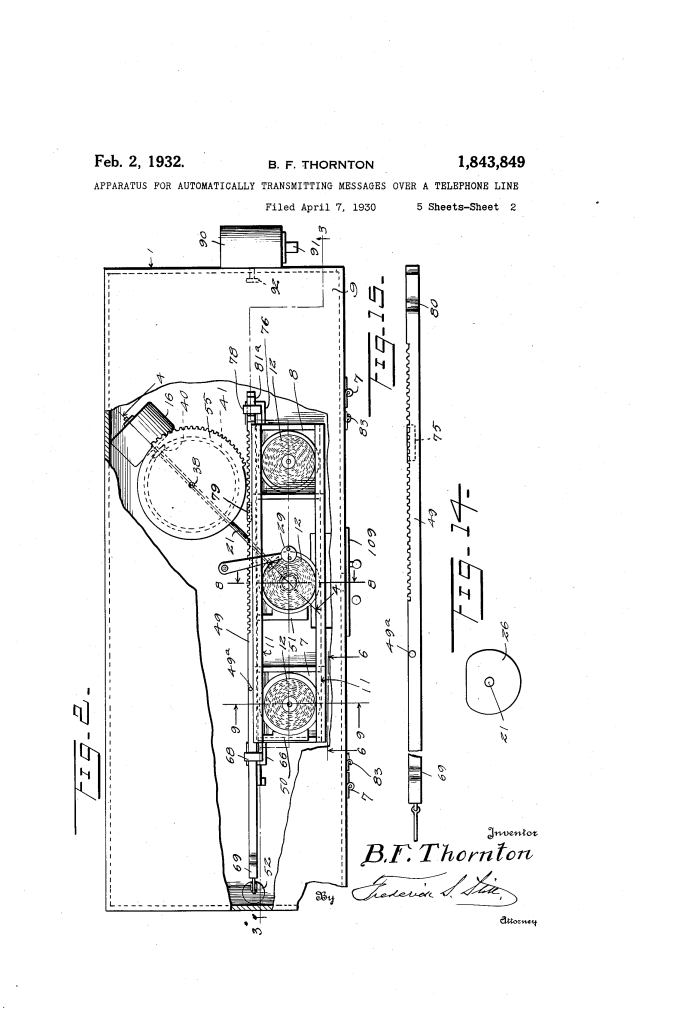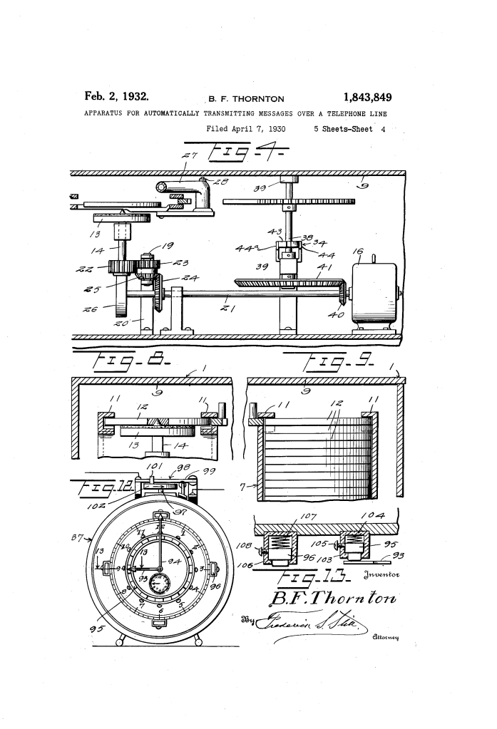 Automatic Message Transmitting Apparatus (Benjamin F. Thornton, No. 1,843,849)