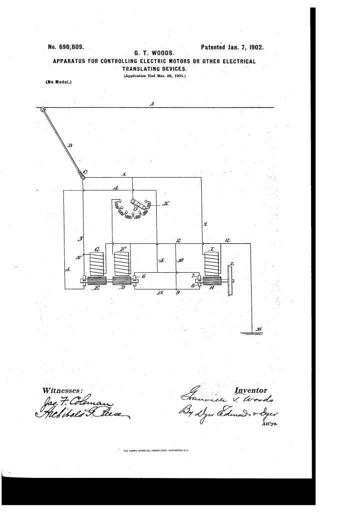 Apparatus for Controlling Electric Motors or other Electrical Translating Devices (Granville T. Woods, No. 690,809)