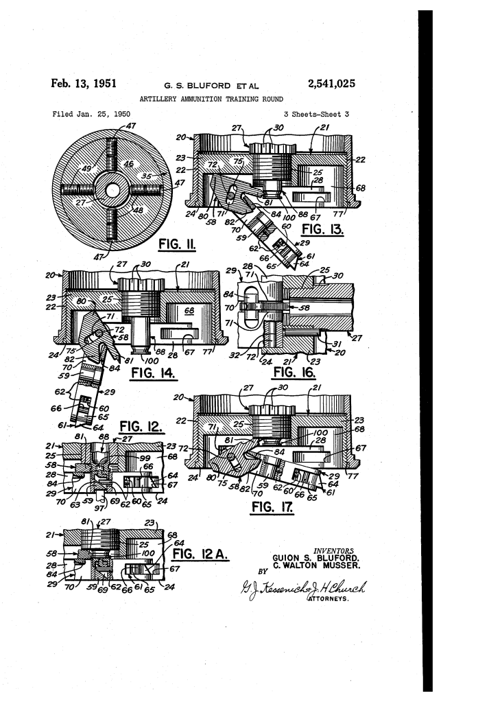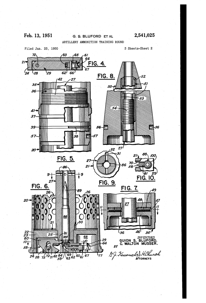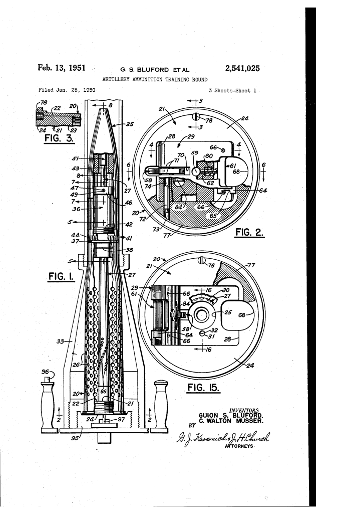 Patented on February 13, 1951 (U.S. Patent No. 2,541,025), this invention was the work of Guion S. Bluford and C. Walton Musser. It addressed a critical need for the U.S. military following World War II: providing realistic training for heavy artillery and recoilless rifles without the massive expense of firing full-caliber shells.