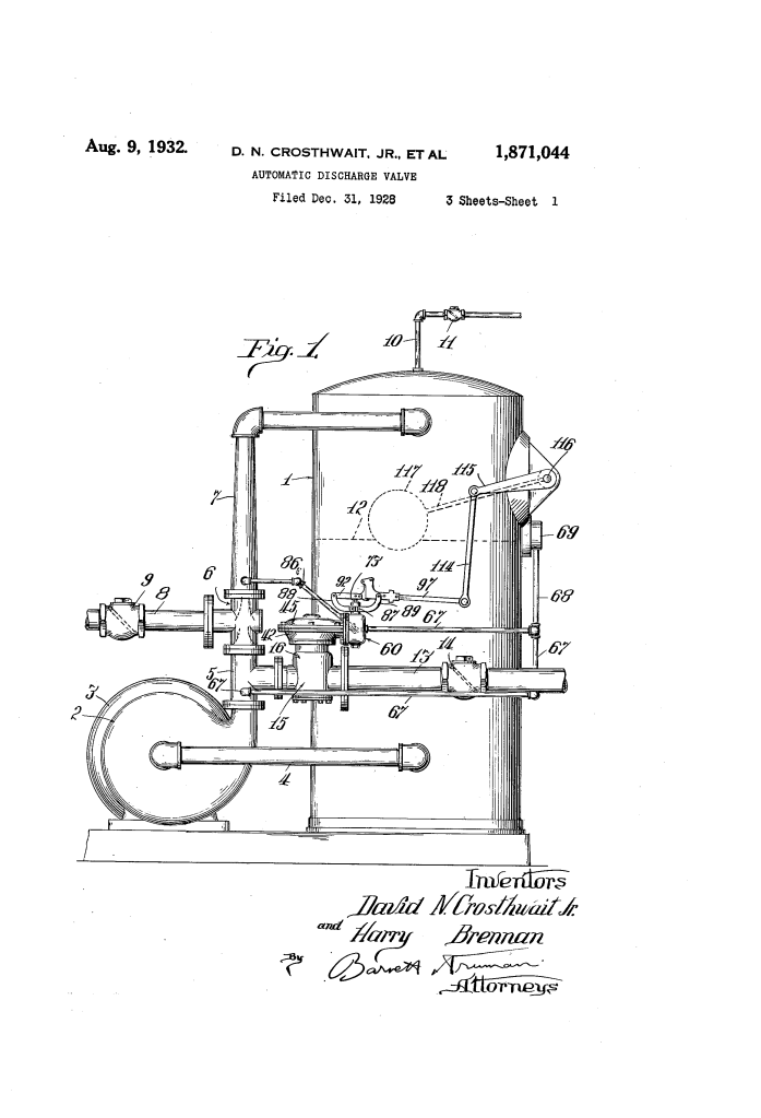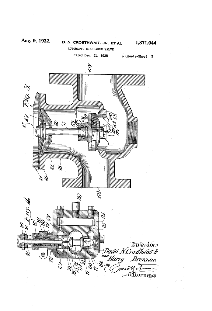 Automatic Discharge Valve (Crosthwait & Brennan, No. 1,871,044)