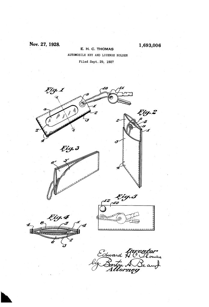 Automobile Key and License Holder (Edward H. C. Thomas, No. 1,689,800)