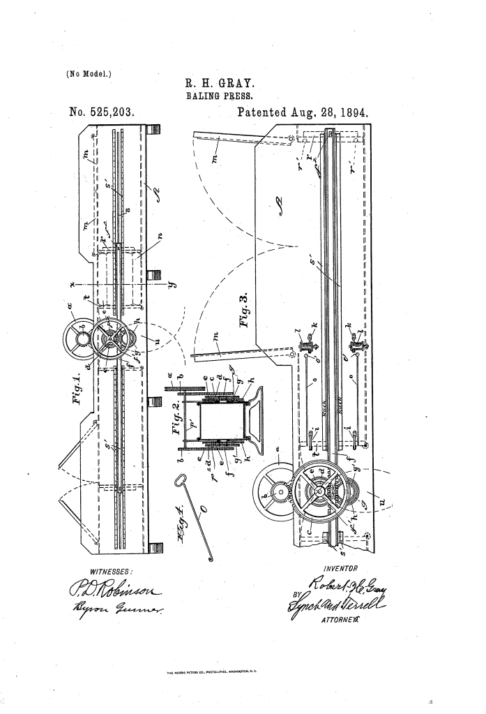 Baling-Press (Robert H. Gray, No. 525,203)
