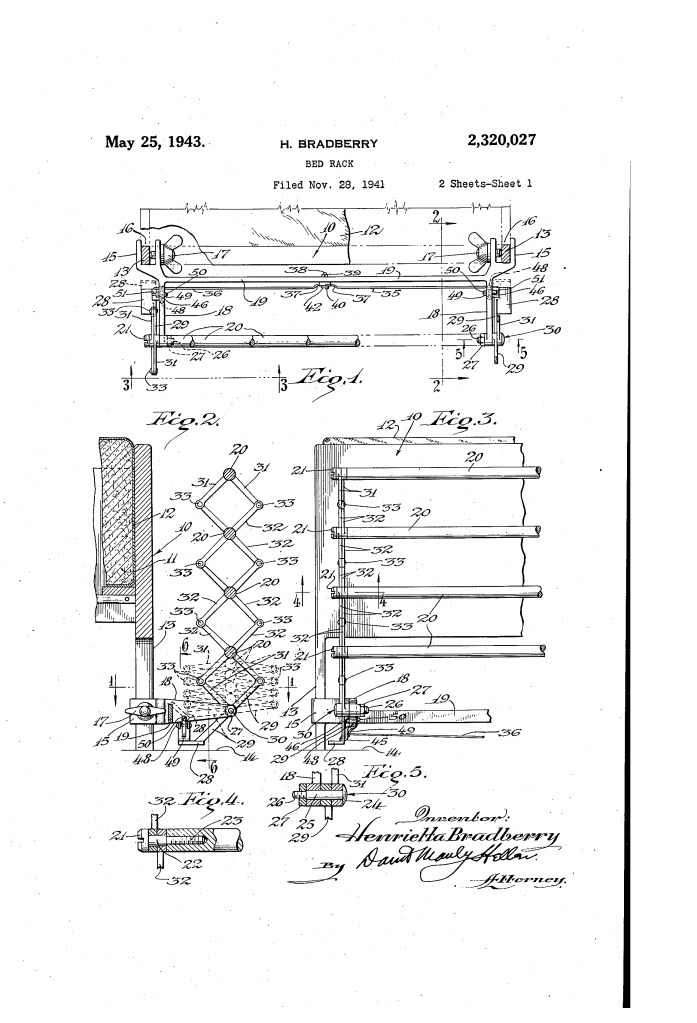 Bed Rack Attachment, Henrietta Bradberry, Patent No. 2,320,027