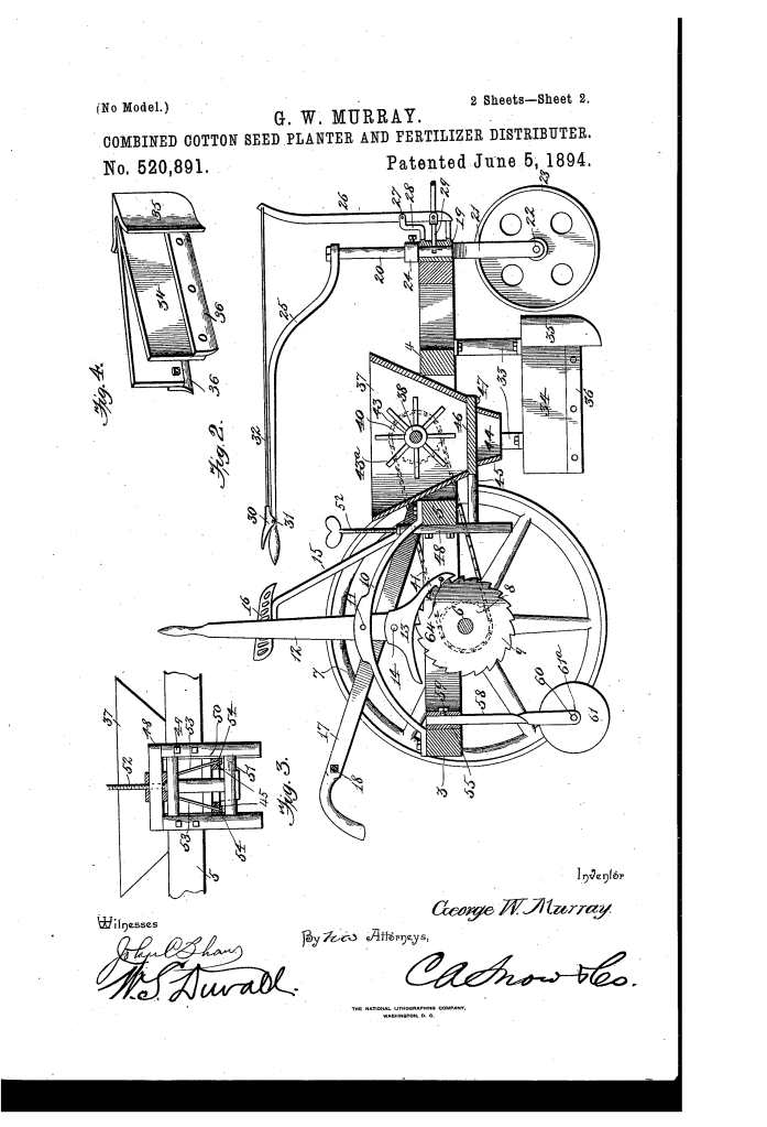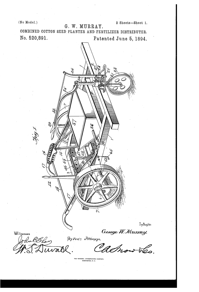 Combined Cotton-Seed Planter and Fertilizer-Distributer (George W. Murray, No. 520,891)