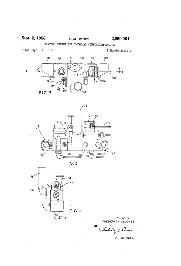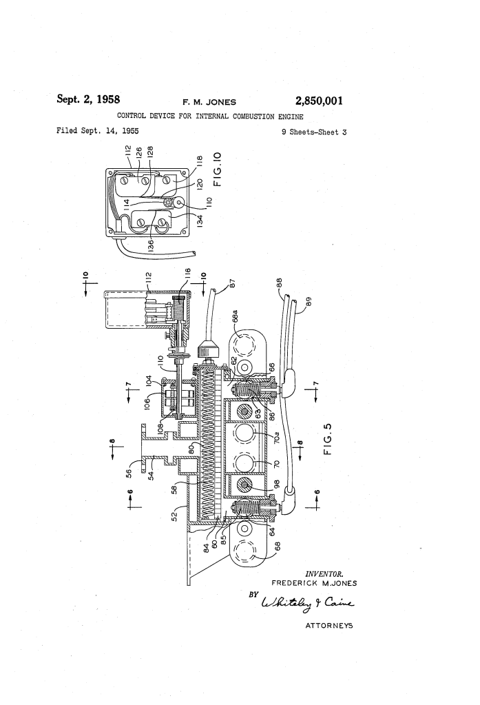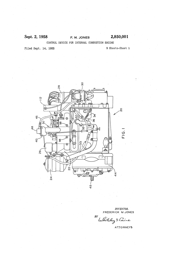 U.S. Patent No. 2,850,001, granted on September 2, 1958, to Frederick M. Jones, describes an advanced thermal control system designed to assist internal combustion engines in starting and operating under extreme cold or when using heavy, low-cost fuels like kerosene or diesel. Frederick Jones, the engineering genius behind Thermo King, developed this system to enhance the reliability of the intermittent engines used in transport refrigeration.