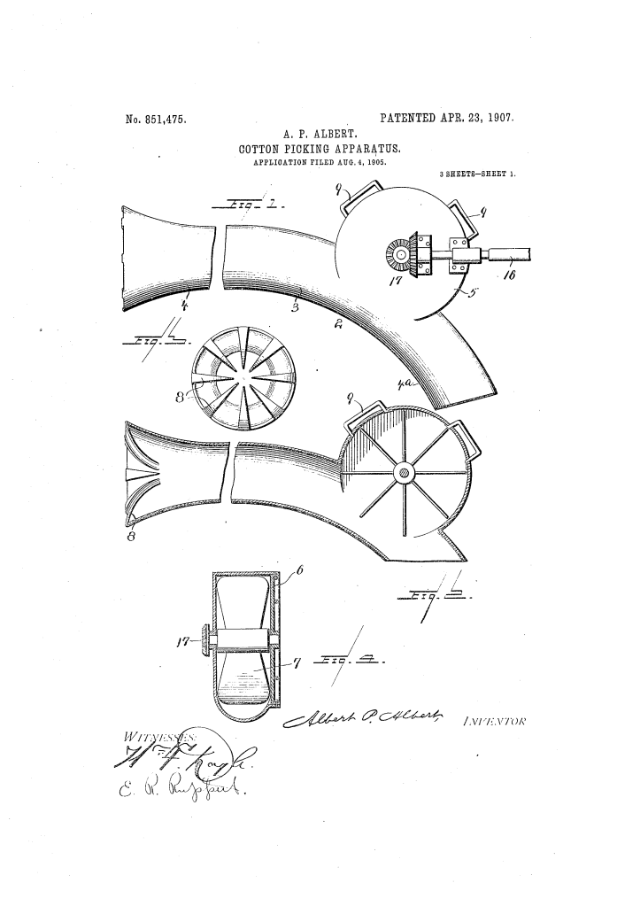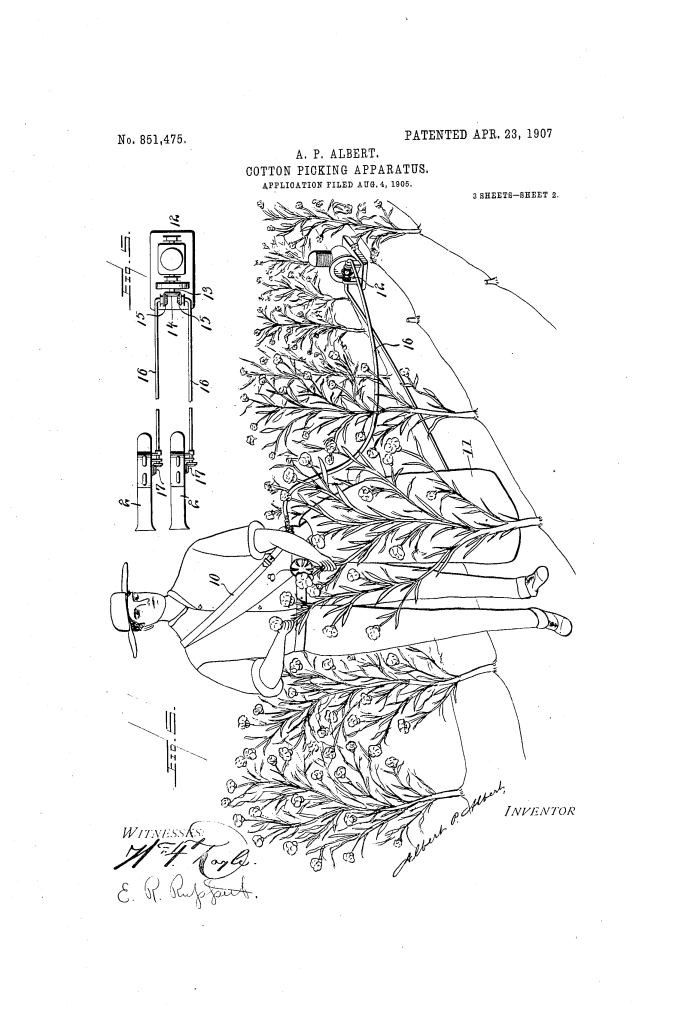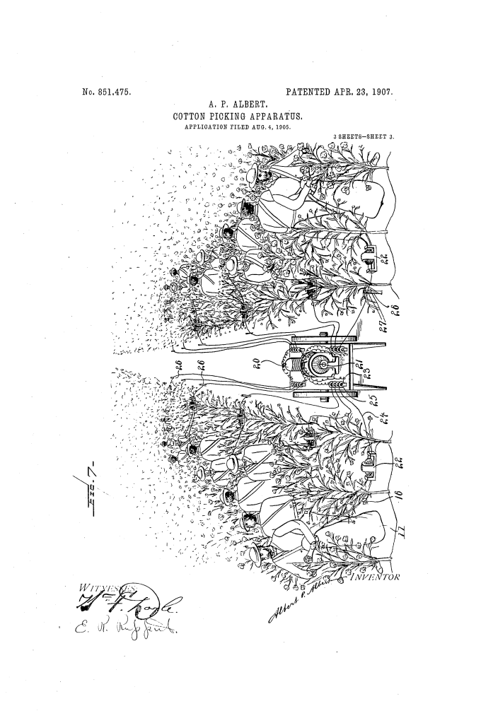 Cotton-Picking Apparatus (Albert P. Albert, No. 851,475)