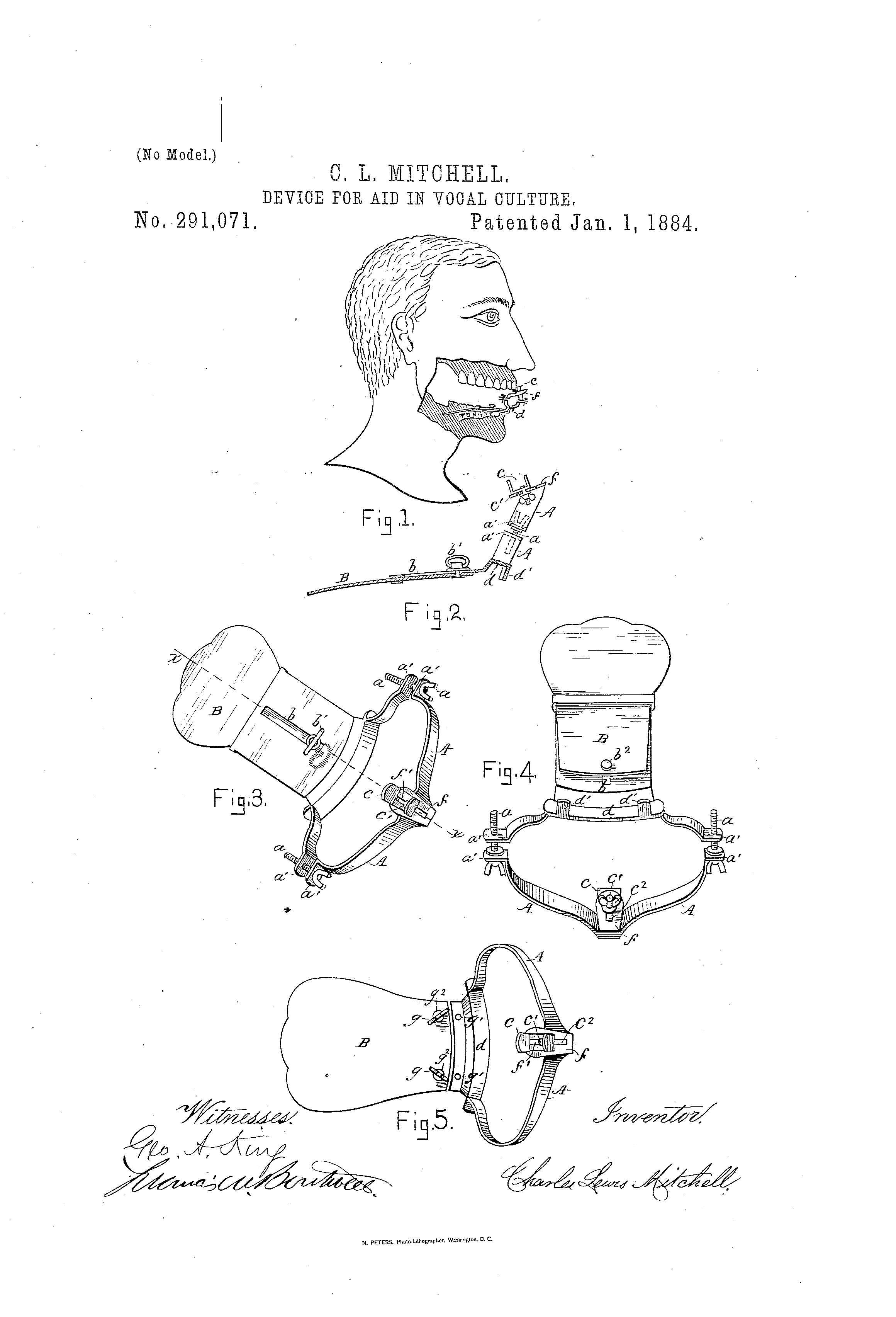 Device for aid in vocal culture – Charles Lewis Mitchell – 1884 – Patent: US291071A
