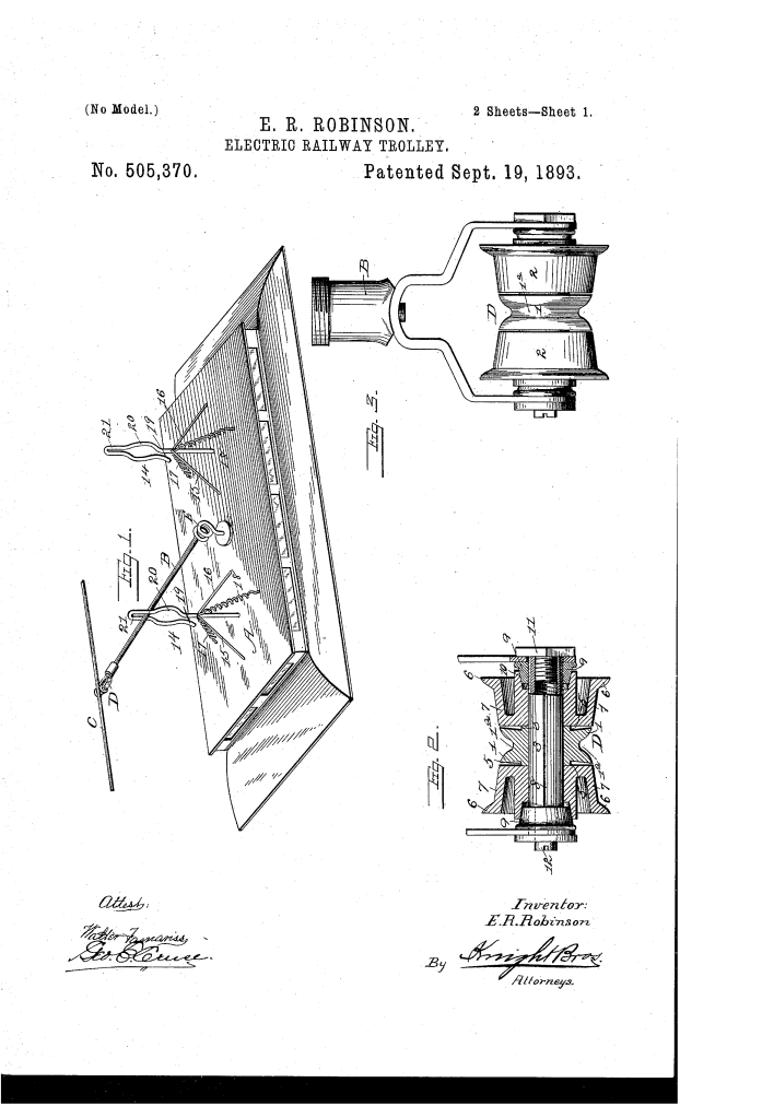 Electric-Railway Trolley (Elbert R. Robinson, No. 505,370)