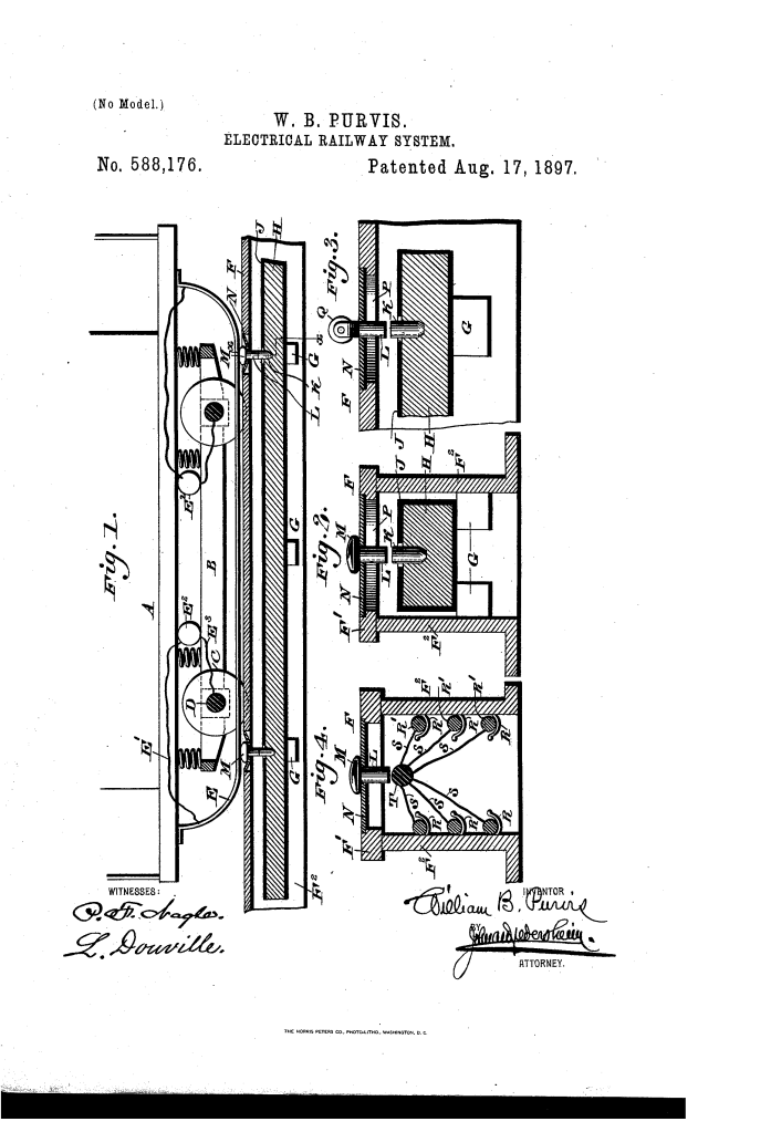 Electrical Railway System (William B. Purvis, No. 588,176)