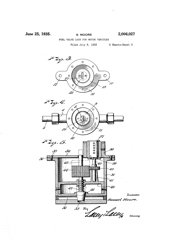 Fuel Valve Lock | Samuel Moore | Patent No. 2,006,027