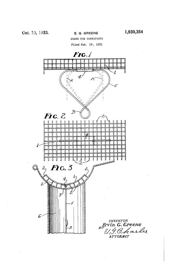 Guard for Downspouts; Ervin G. Greene; Patent No. 1,930,354