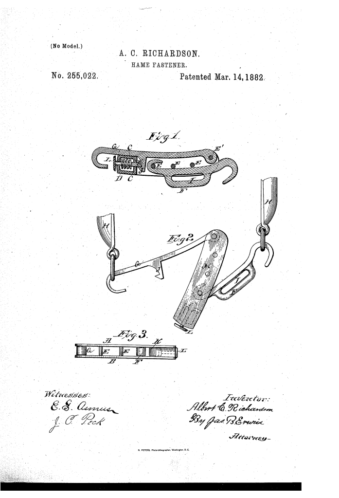Hame-Fastener (Albert C. Richardson, No. 255,022)