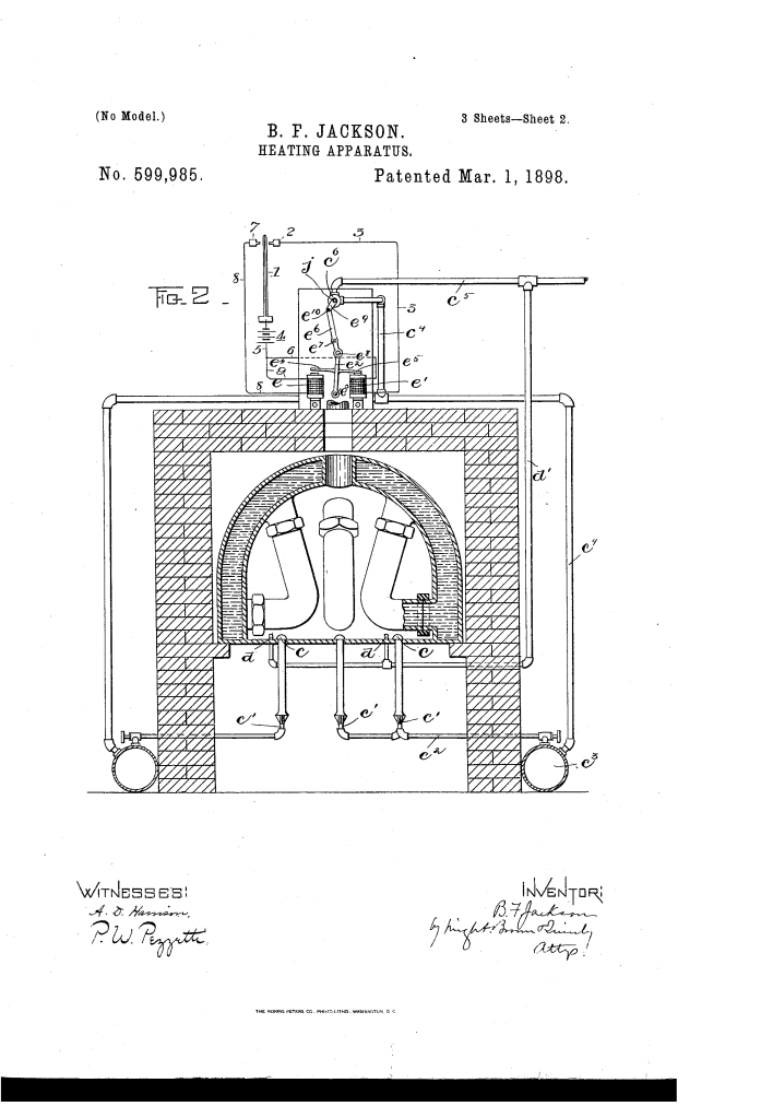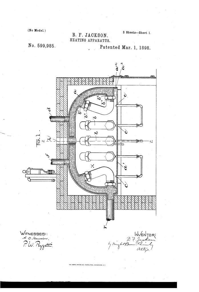 Jackson’s heating apparatus influenced subsequent boiler design by establishing principles for high-efficiency, closed-system gas combustion and internal heat exchange.