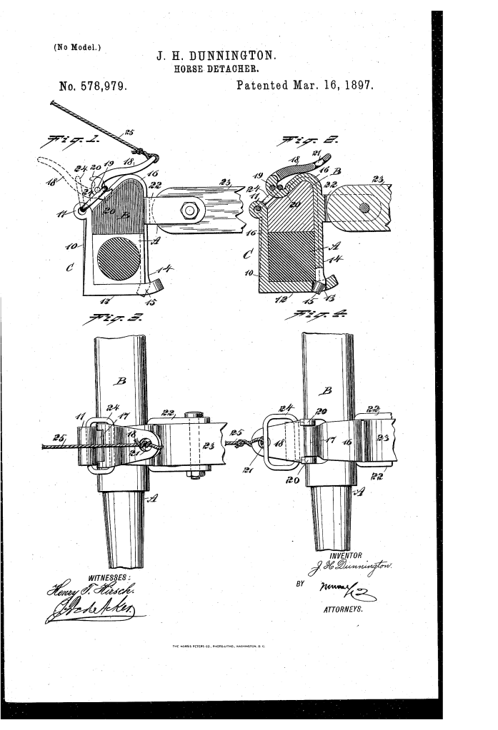 Horse-Detacher (James H. Dunnington, No. 578,979)