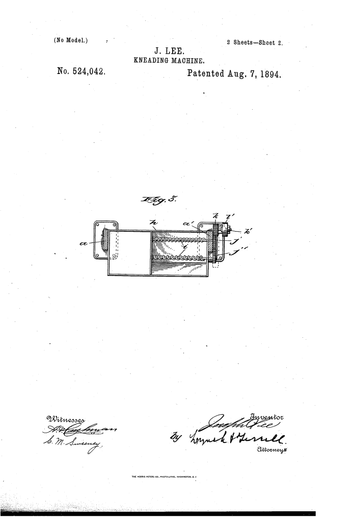 Joseph Lee’s 1894 patent is an important development in the history of food processing equipment, specifically addressing the industrialization of baking.