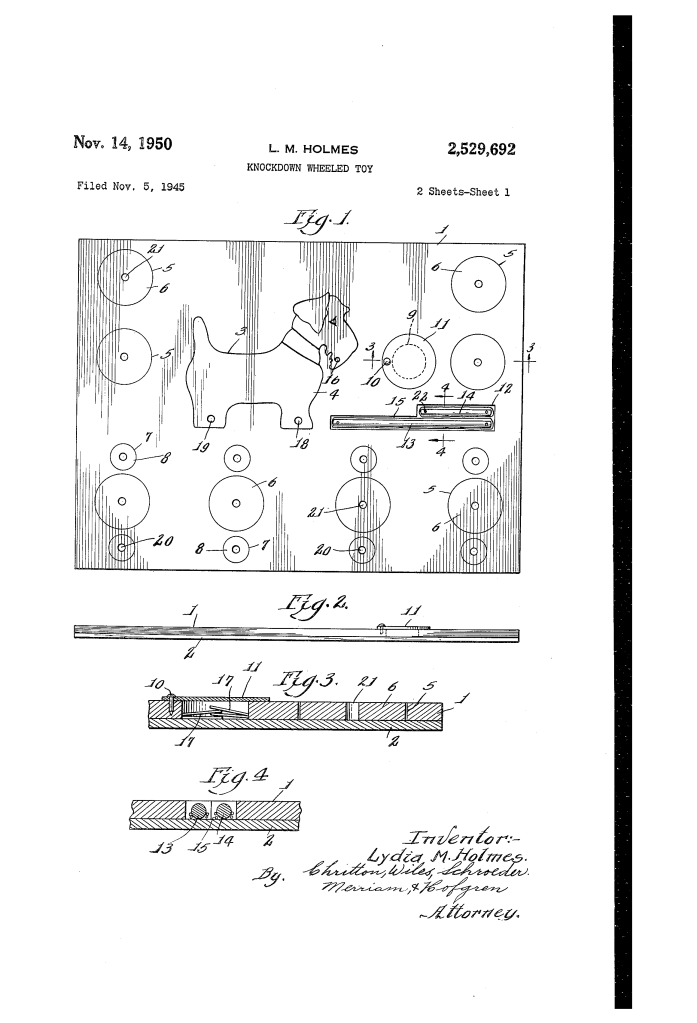 Knockdown Wheeled Toy, Lydia M. Holmes (1950)