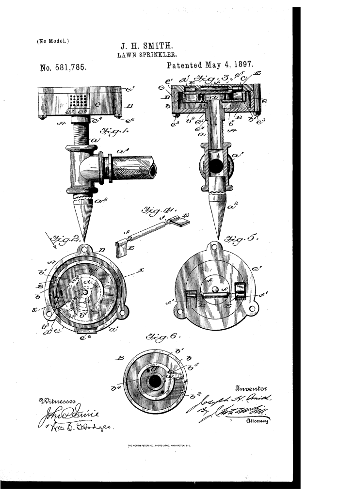 Lawn-Sprinkler (Joseph H. Smith, No. 581,785)