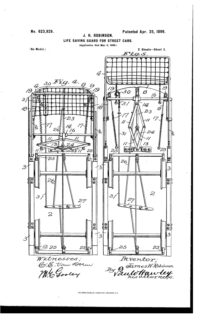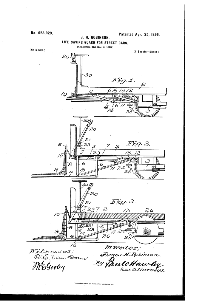 Life-Saving Guard for Street-Cars (James H. Robinson, No. 623,929)