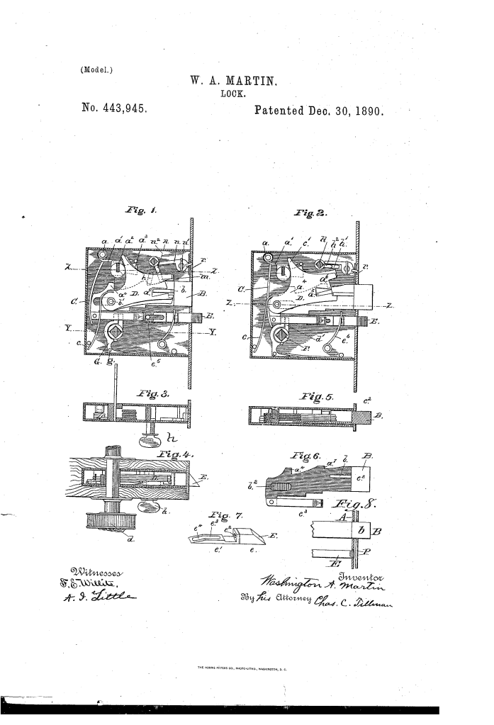 Washington A. Martin was an African American inventor who made significant contributions to lock technology. This patent is a testament to his expertise and a superb example of a complex, well-engineered device.
