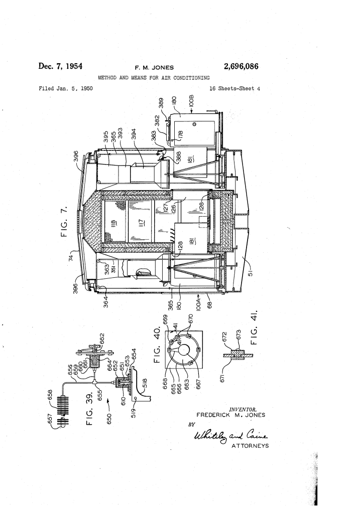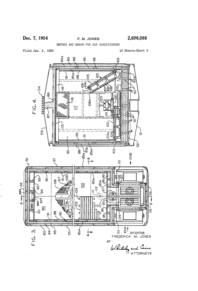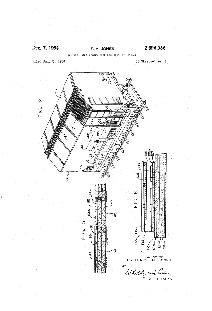 - The “Slide-Out” Feature: To solve the problem of complex repairs, Jones designed the units to be “package units.” By unlocking a sliding door (68), the entire engine and cooling assembly can be winched out for replacement in minutes, similar to a modern modular server.
