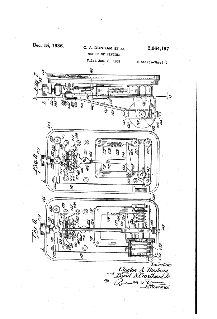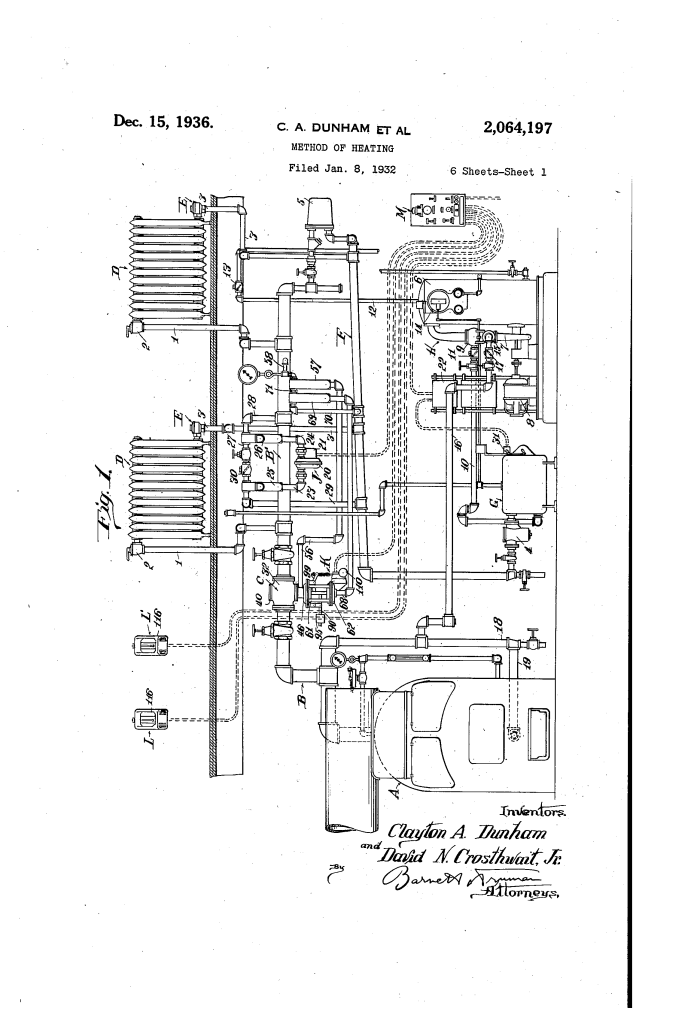 Sub-Atmospheric Effective Temperature Heating System, Clayton A. Dunham & David N. Crosthwait, Jr., Patent No. 2,064,197