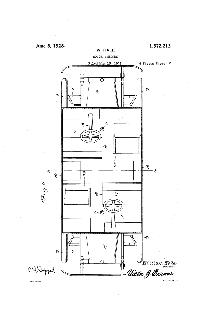 Dual-Directional Motor Vehicle (William Hale, No. 1,672,212)