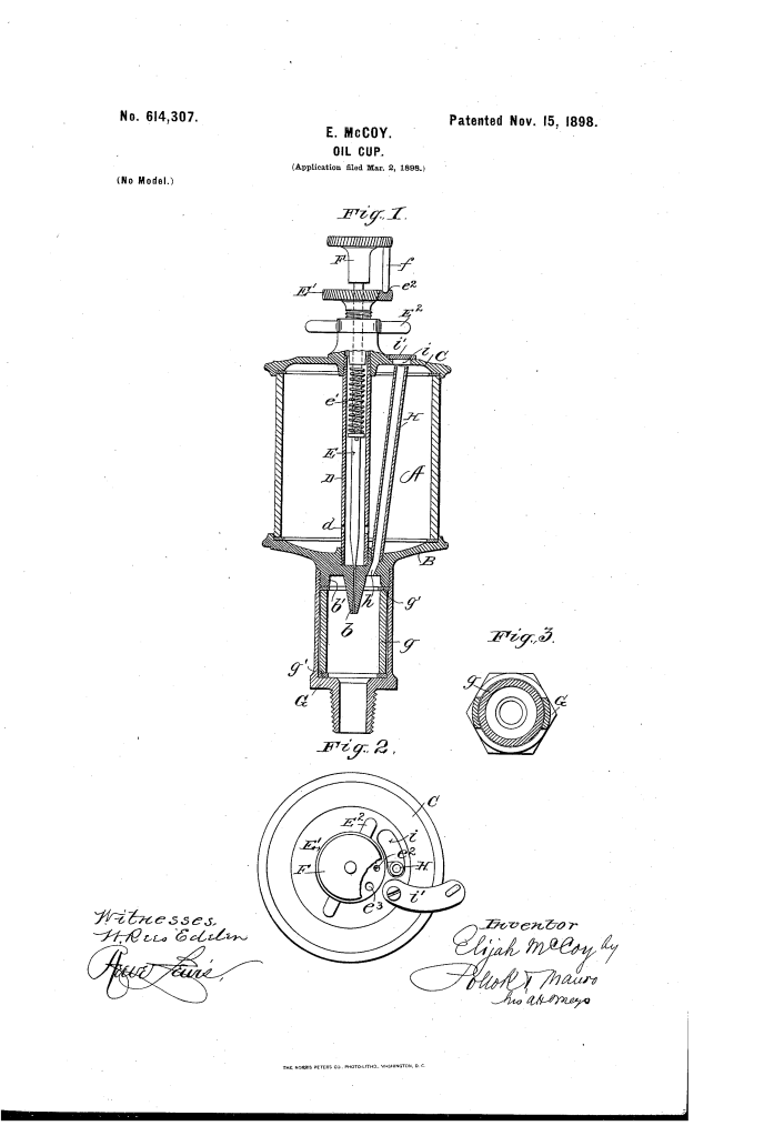 Oil-Cup (Elijah McCoy, No. 614,307)