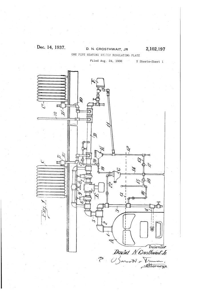 One-Pipe Heating System Regulating Plate: David N. Crosthwait, Jr. (Patent No. 2,102,197)