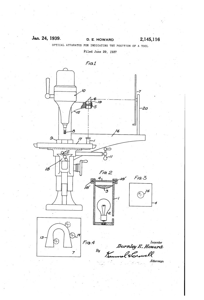 Optical Apparatus for Indicating the Position of a Tool: Darnley E. Howard (Patent No. 2,145,116)