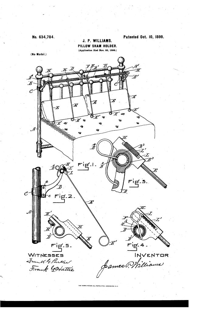Pillow-Sham Holder (James P. Williams, No. 634,784)