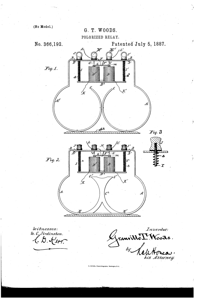 Polarized Relay (Granville T. Woods, No. 366,192)