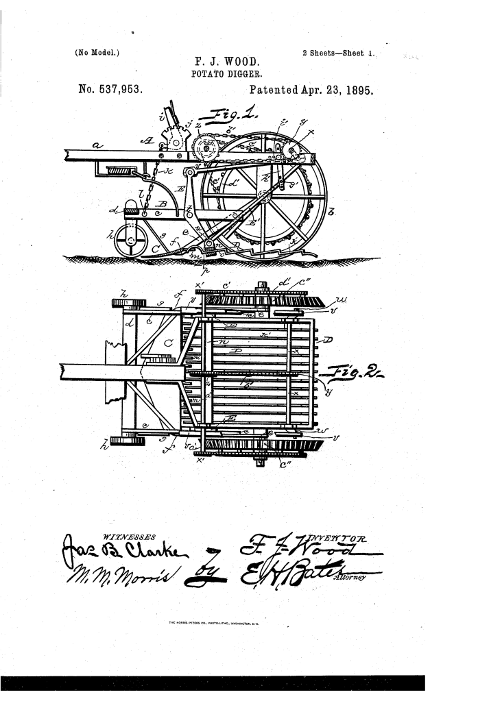 Wood’s potato digger utilizes principles still central to modern agricultural machinery: