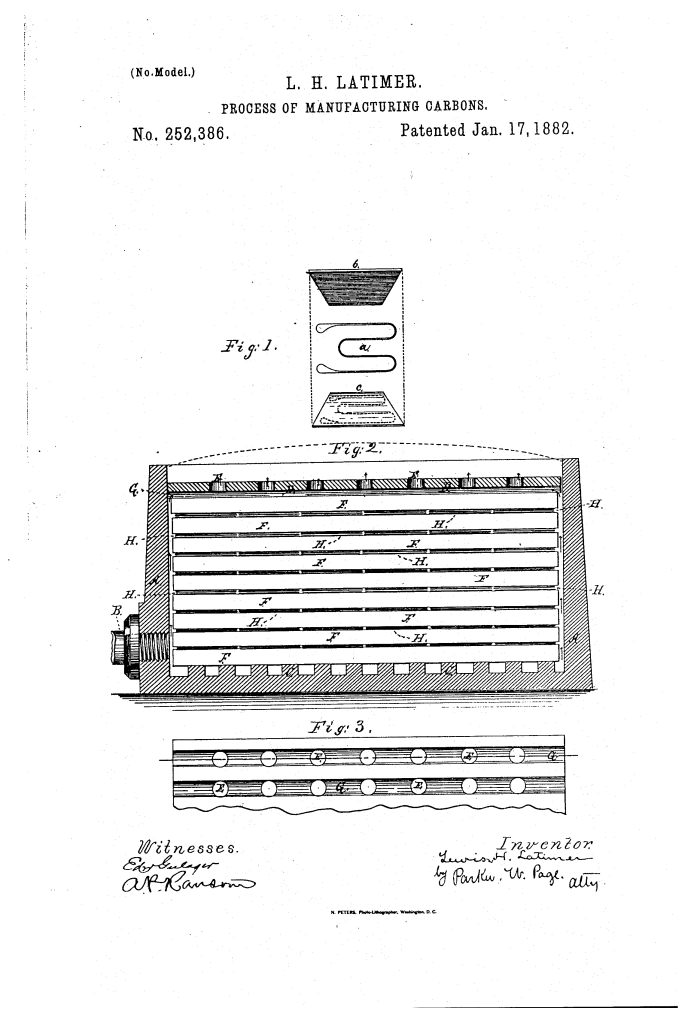Process 0f Manufacturing Carbons – Lewis H. Latimer – 1882 – Patent: US252386A