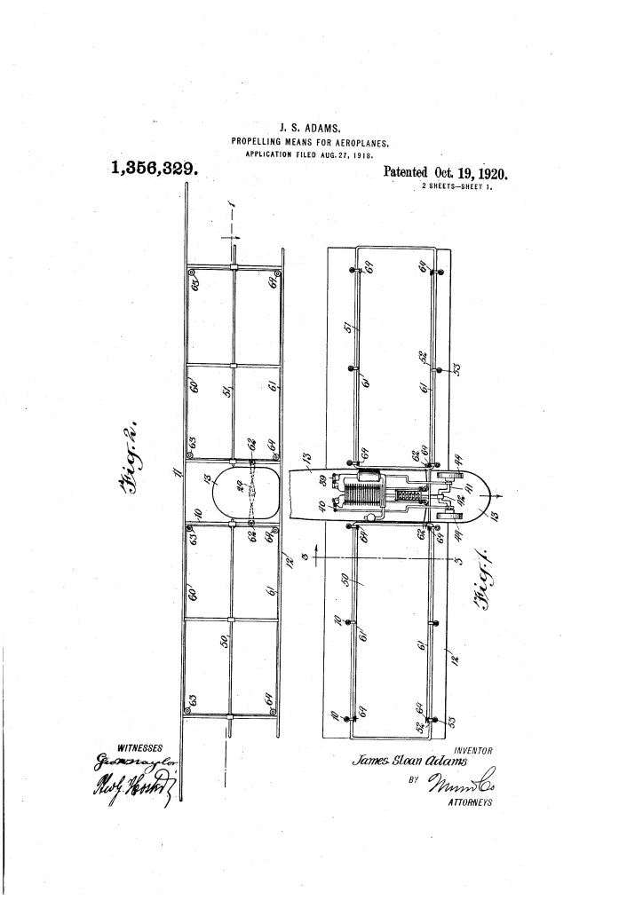 Propelling Means for Aeroplanes (James Sloan Adams, No. 1,356,329)