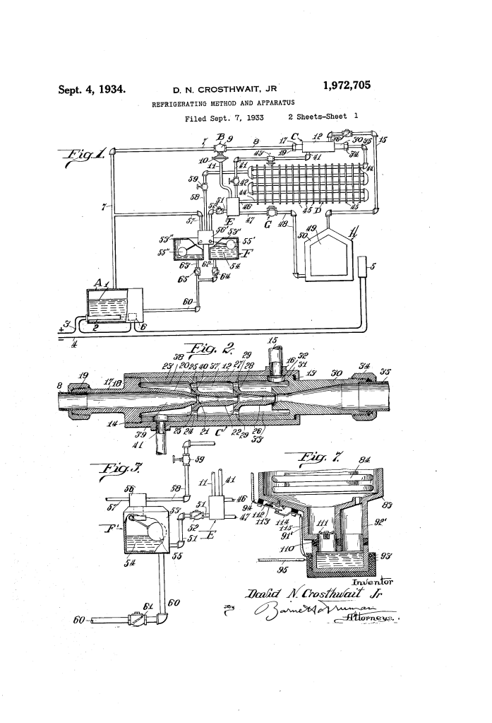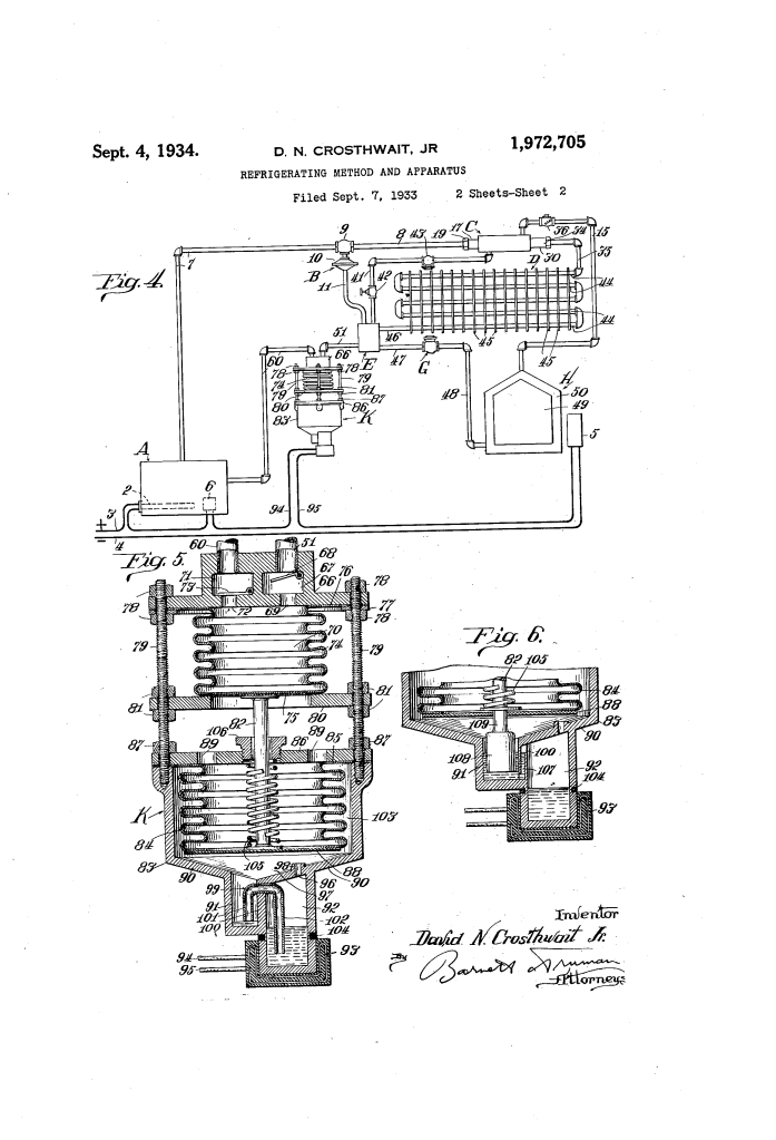 Refrigerating Method and Apparatus: David N. Crosthwait, Jr. (Patent No. 1,972,705)