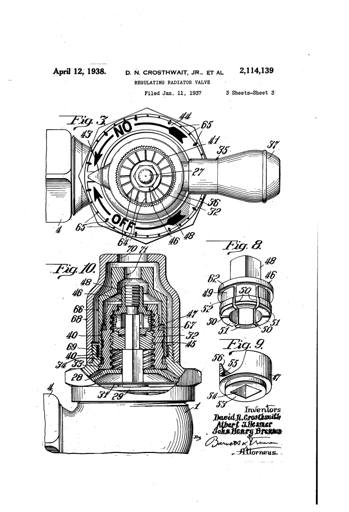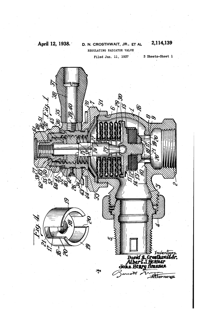 Regulating Radiator Valve: Crosthwait, Hesmer, & Brennan (Patent No. 2,114,139)