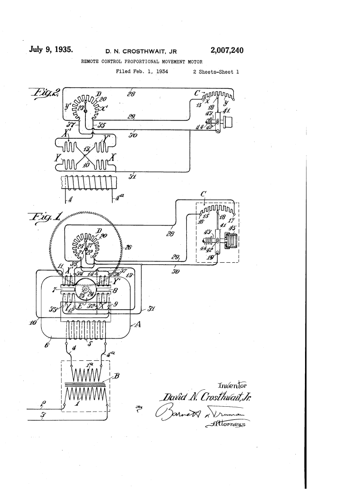 Remote Control Proportional Movement Motor | David N. Crosthwait, Jr. | Patent No. 2,007,240