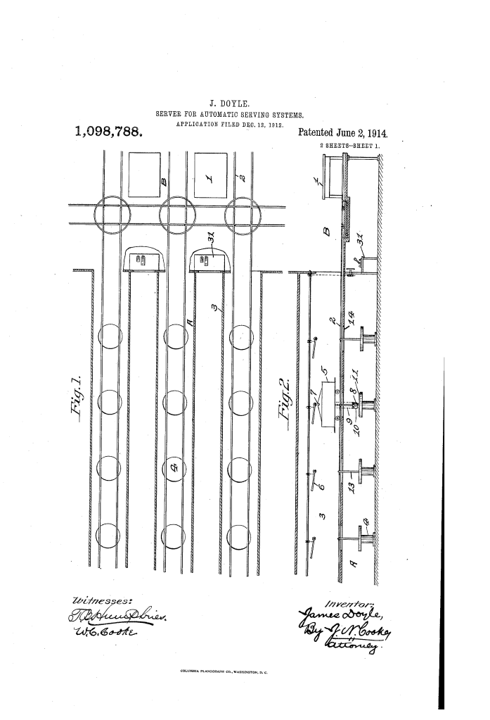 Server for Automatic Serving Systems (James Doyle, No. 1,098,788)