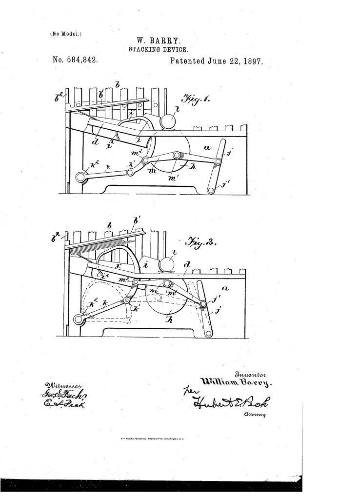 Stacking Device (William Barry, No. 584,842)