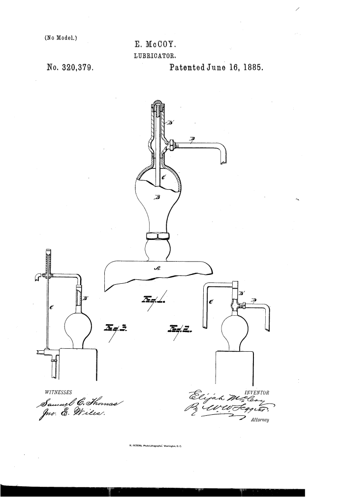 - The “Real McCoy”: As with his other patents, this lubricator’s superior reliability was far better than the numerous imitations on the market. It is part of the story of the origin of the phrase “The Real McCoy”, which is widely believed to have originated from engineers who insisted on his authentic products.