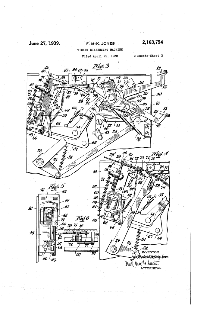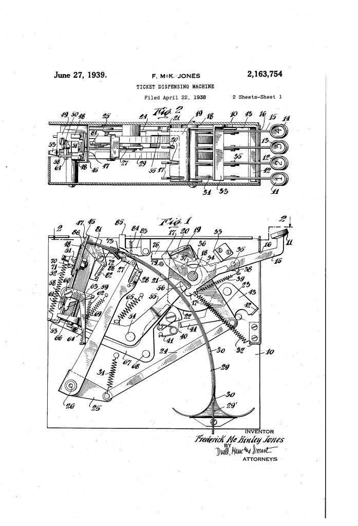 Ticket Dispensing Machine: Frederick McKinley Jones (Patent No. 2,163,754)