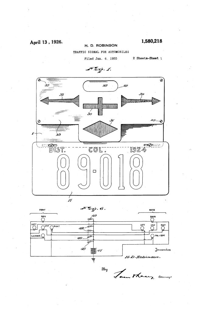 Traffic Signal for Automobiles (Hassel D. Robinson, No. 1,580,218)