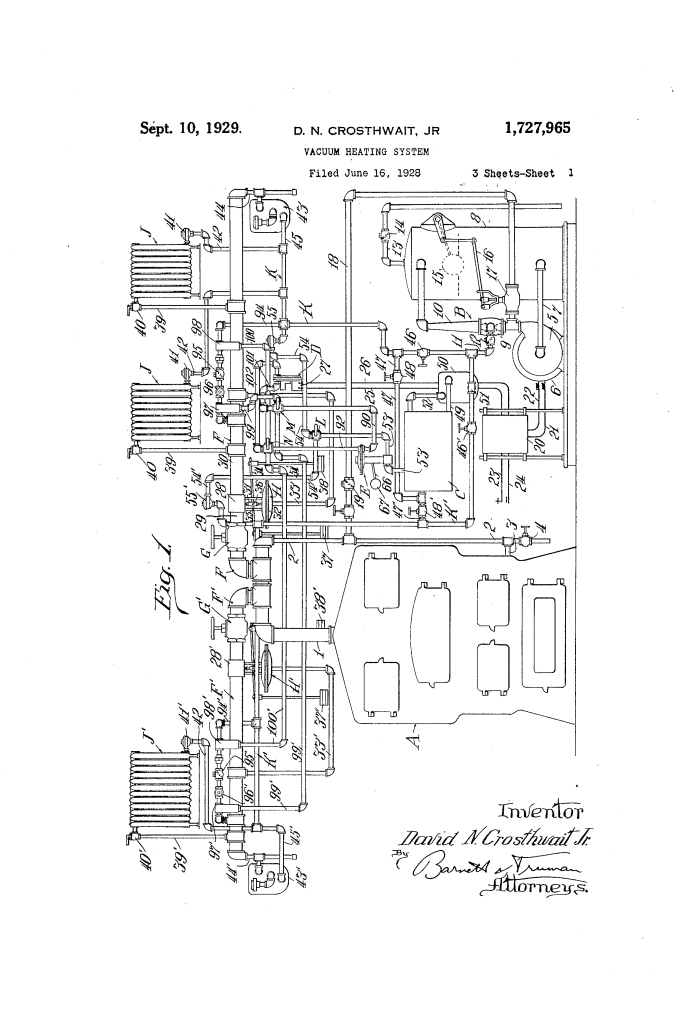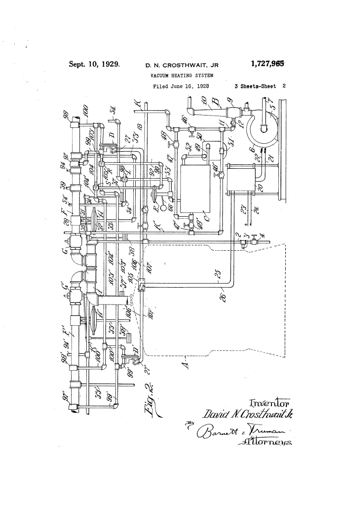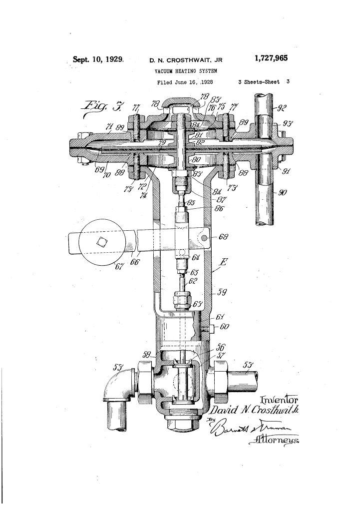 Vacuum Heating System: David N. Crosthwait, Jr. (Patent No. 1,727,965)