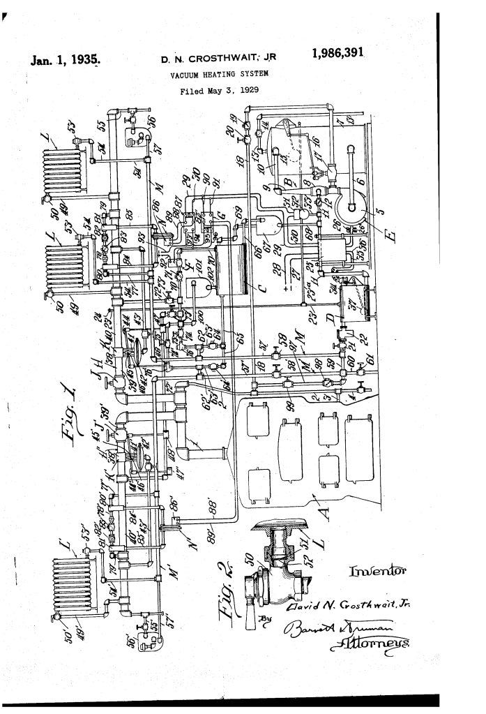 Vacuum Heating System, David N. Crosthwait, Jr., Patent No. 1,986,391