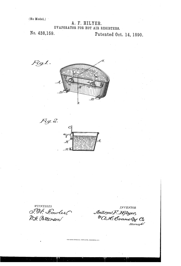 - Solving a Common Problem: As hot-air furnaces became a popular method of heating homes, a new problem emerged: excessively dry indoor air, which can be harmful to a person’s health and damaging to wooden furniture. Hilyer’s invention provided a simple, affordable, and effective solution to this widespread issue.